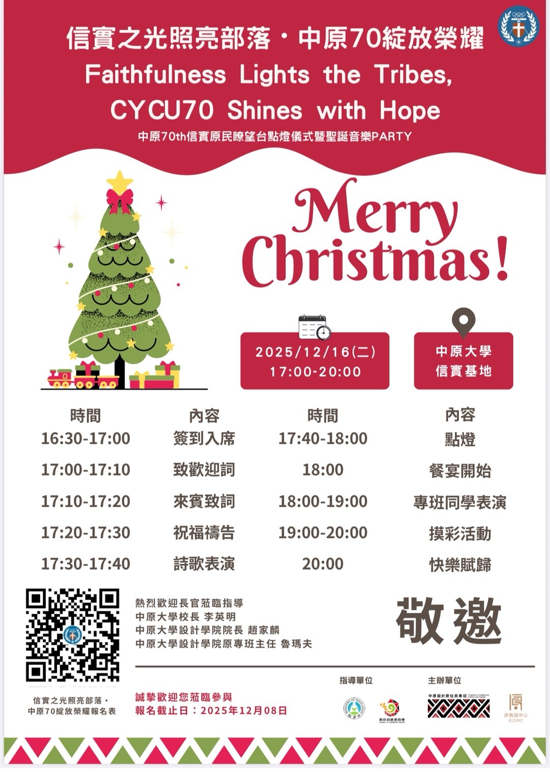 中原大學辦理「信實之光照亮部落・中原70綻放榮耀」—中原70th信實原民瞭望台點燈儀式暨聖誕音樂饗宴活動